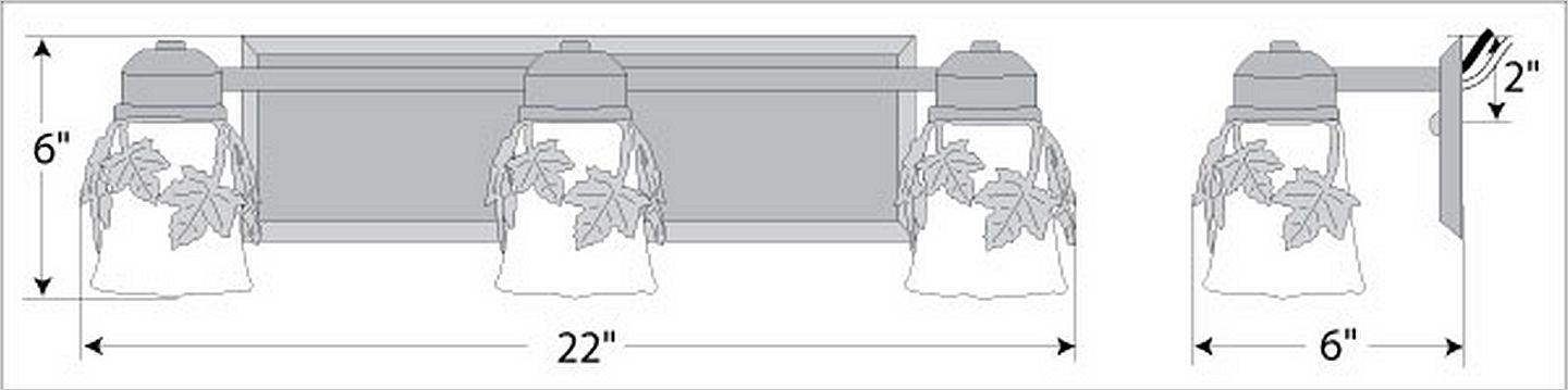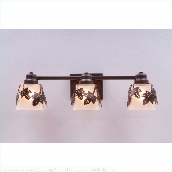 The Woodland Triple Bath Light - Maple features three pieces of square mission style glass and simple leaf designs surrounding the glass. The Maple leaves have hand-cut interior lines which gives each image a unique look. Choice of glass color between Frost Clear and Tea-Stained. This fixture may be hung with bulb pointing up or down. This sophisticated take on traditional rustic lighting will generate a warm atmosphere in any bathroom.