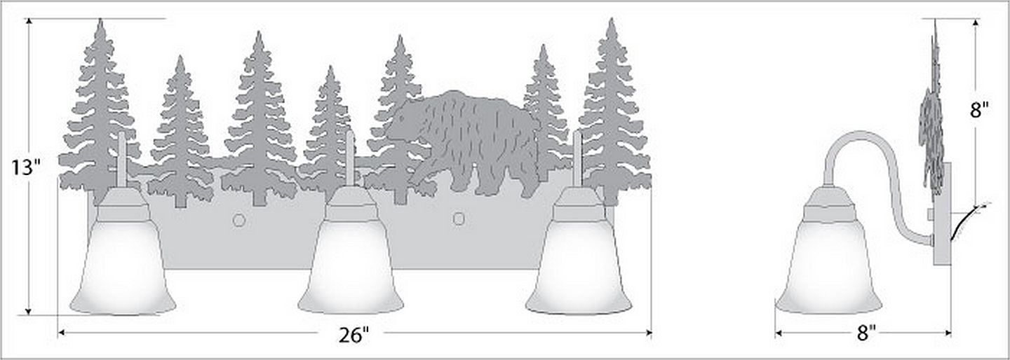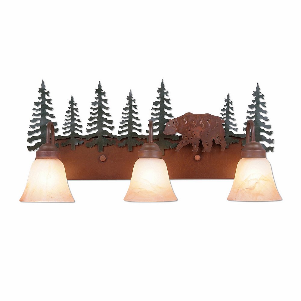 Affordable and pratical bathroom lights make the Wasatch Bathroom Vanity lights one of our best selling series. This fixture is the Wasatch Triple - Bear which gives abundant light and rustic character to any bathroom.