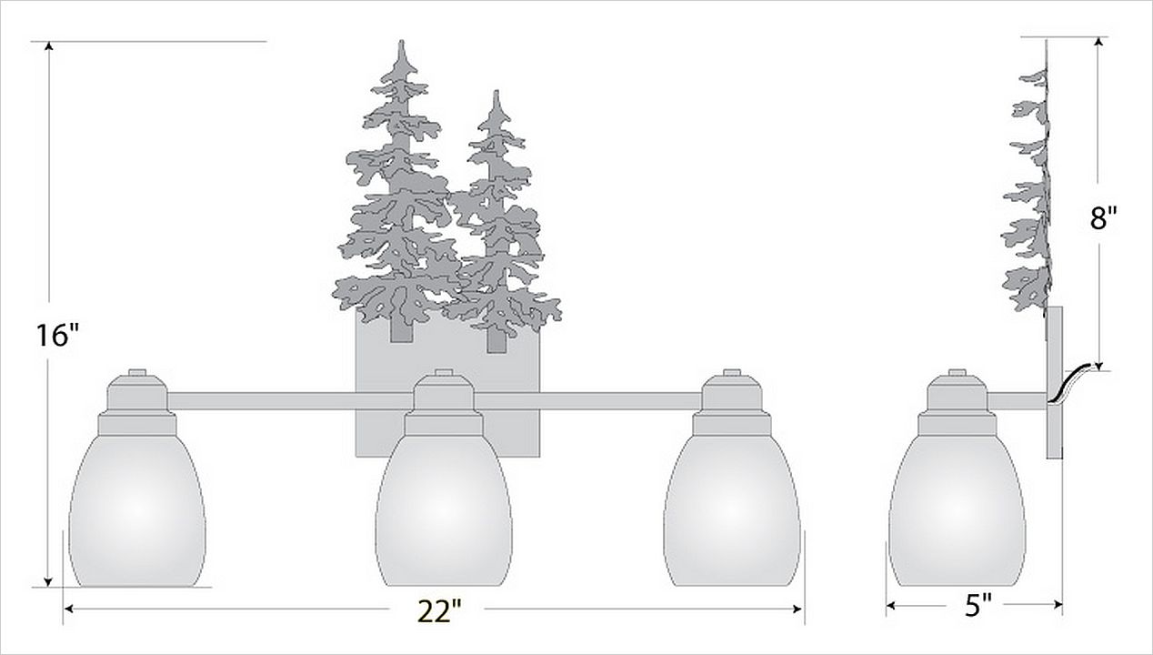 The Parkshire Triple Bath Light - Cedar Tree is a three-light vanity fixture which features a three-dimensional image of a 3D cedar tree. There are seven different glass globes that fit this bath vanity, so you can pick a style that suits your decorating needs. This western styled bath light will provide abundant light to any bathroom, whether in a log cabin, or in a traditional home where a eye-catching decor style is desired. Hardwire is standard.