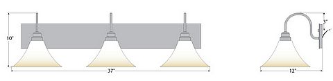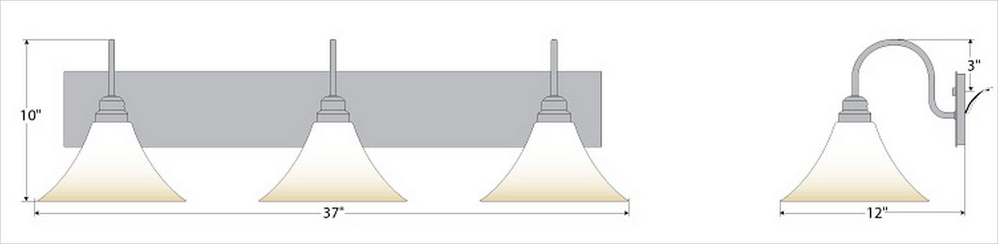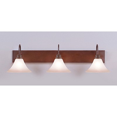 The Cedarwood Triple Bath Vanity Light - Rustic Plain features three cone glass globes- your choice of cream swirl or two-two tone amber glass - mounted against a back plate offered in a variety of finish options. This rustic bath light is great for anywhere to add warm lighting and rustic character to their log home, cabin or northwood lodge-themed bathroom.