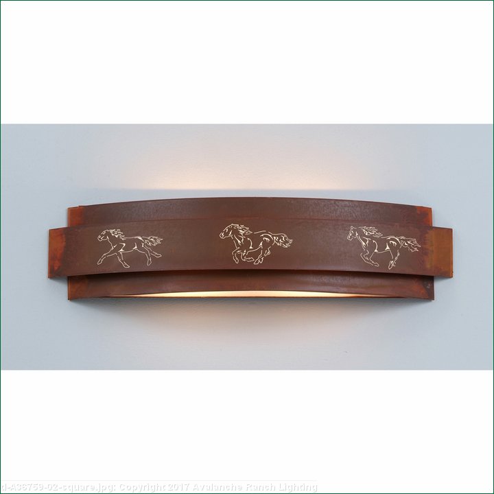 The Northridge Bath Light - Horse Cutout light features three horizontal bands, with laser cutout horse patterns the middle band. This light has a frost glass diffuser bottom and thin acrylic panels are behind the cutouts. Light projects both up and down. This light is ideal for anyone looking for a stylish rustic contemporary or western look for their bathroom, hallway or home.