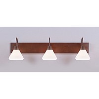The Cedarwood Triple Bath Vanity Light Series is 38 inches wide and are offered with a choice of 3 different larger sized cone glass. With it's rating of 100 W bulbs, and larger size profile, this rustic bath light will really provide abundant light to any larger rustic bathroom.