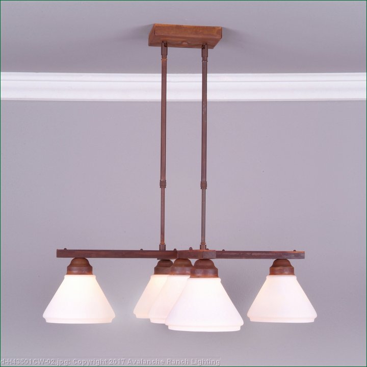 The Cedarwood 5 Light Chandelier - Rustic Plain features five bulbs, adjustable height stems and a choice of two different styles of cone glass. Included with the fixture is 10 feet of wire and two telescoping stems that have a 12 inch adjustment range from 15 to 27 inches. For longer adjustments up to 138 inches, order one or more of the extension kits. A matching 5 by 6 inch ceiling canopy is also included. To add extensions to stem length, use accessory kits for double stem fixtures PK460. For vaulted ceilings, use accessory Kit CK422