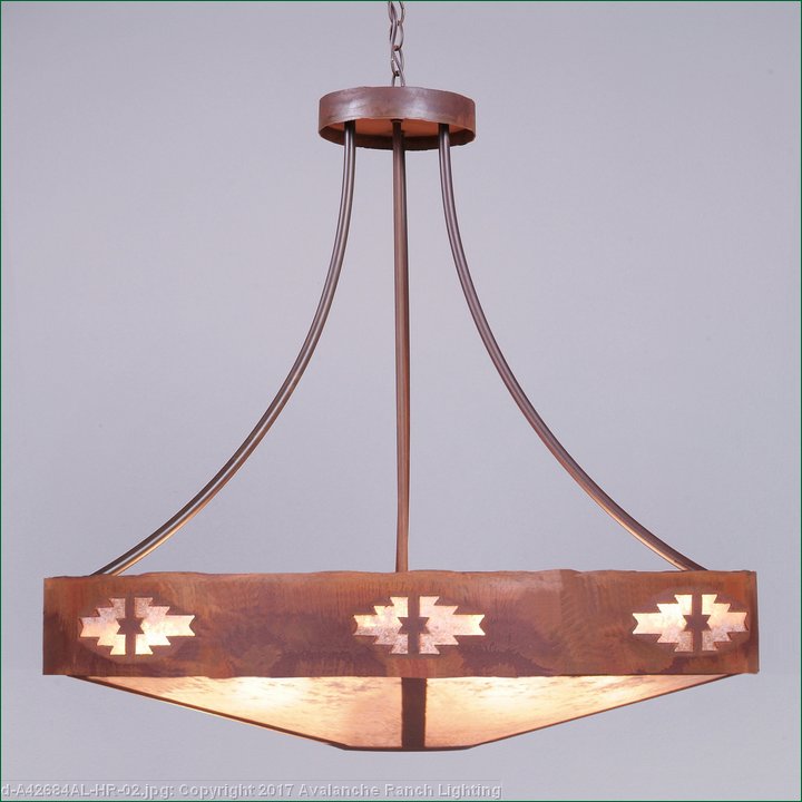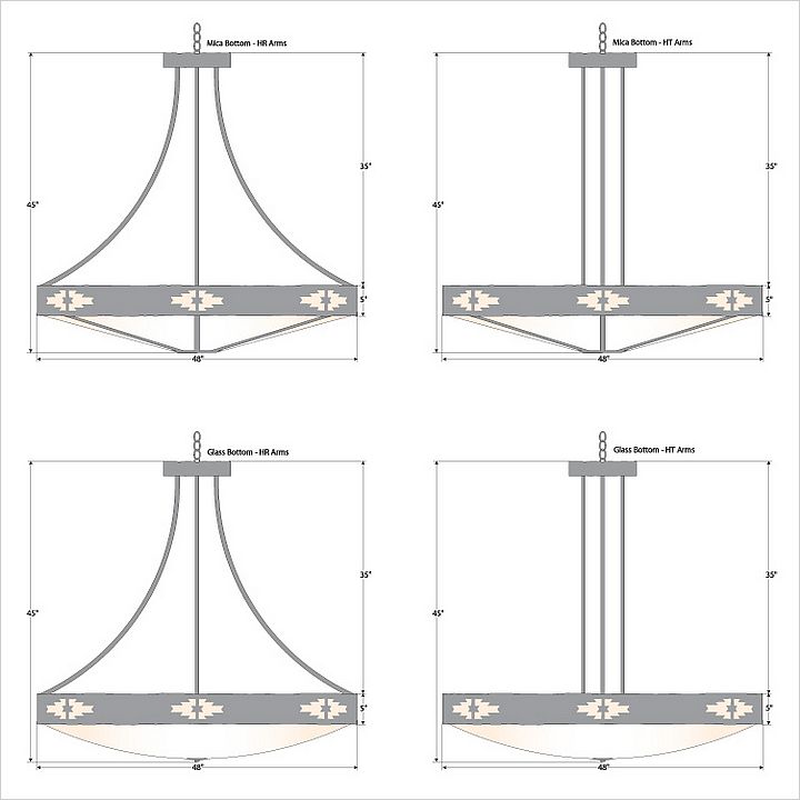 The Ridgemont Chandelier Extra Large - Pueblo is 47 inches in diameter and features our exclusive southwestern pueblo cutout around the steel band. Behind each cutout is a diffuser panel. This rustic chandelier comes with a choice of diffuser material: Almond Mica, Amber Mica or Ivory Paper. For the styles with a diffuser bottom, a single downlight is built into the bowl. A matching ceiling canopy is also included, along with 3 feet of chain and 10 extra feet of wire. This item will add a rustic, Southwestern character to any log home, cabin or northwood lodge-themed room.