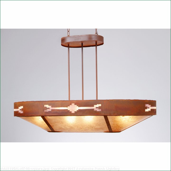 The Ridgemont Chandelier Oval - Del Rio fixture is oval shaped 24 by 42 inches and features Southwest-inspired hand-cut patterns around the band of the chandelier. This item is ideal for anyone looking for a rustic chandelier to add Southwestern character to their log home, cabin or northwood lodge-themed room. It comes with a choice of diffuser material: Almond Mica, Amber Mica, or Ivory Paper. There are also two downlights for direct lighting to a table. A matching ceiling canopy, along with 6 feet of chain (for a 3 foot drop) and 10 extra feet of wire are also included.