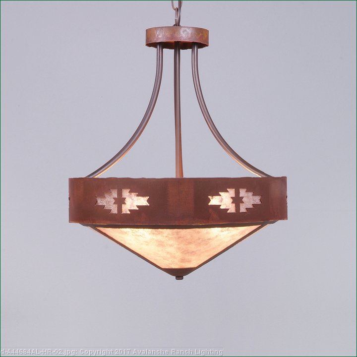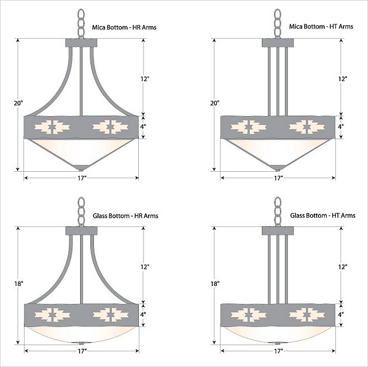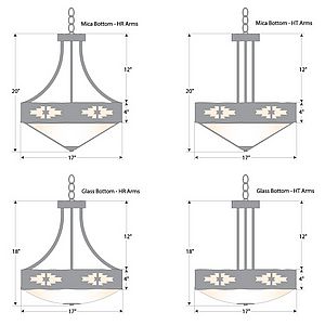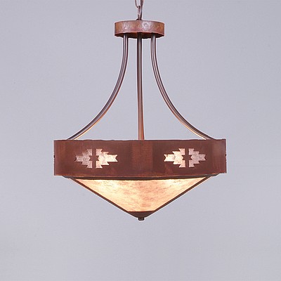 The Ridgemont Foyer Chandelier Large Short - Shade Bottom- Pueblo Cutout is 17 inches in diameter by 19 inches tall, and features our exclusive southwestern pueblo cutouts around the steel band. Behind each cutout is a diffuser panel. This small chandelier comes with a choice of diffuser material: Almond Mica, Amber Mica, or Ivory Paper. A matching ceiling canopy is also included, along with 3 feet of chain and 10 extra feet of wire. This item will add a rustic, Southwestern character to the entryway of any log home, cabin or northwood lodge-themed room.