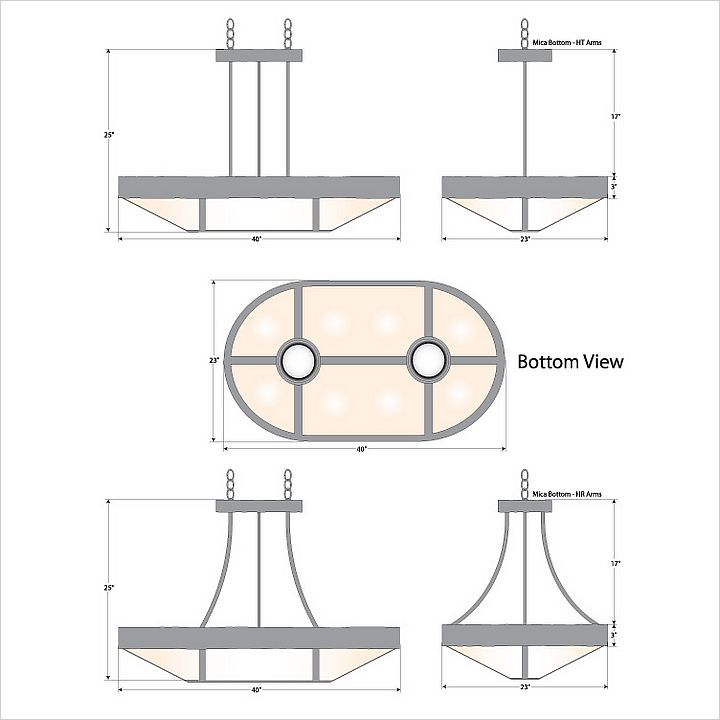 The Ridgemont Chandelier Oval - Rustic Plain fixture is oval shaped 24 by 42 inches rustic band and is ideal for anyone looking for a chandelier to add warm, rustic lighting to their log home, cabin or northwood lodge-themed room. It comes with a choice of diffuser material: Almond Mica, Amber Mica, or Ivory Paper. There are also two downlights for direct lighting to a table. A matching ceiling canopy, along with 6 feet of chain (for a 3 foot drop) and 10 extra feet of wire are also included.