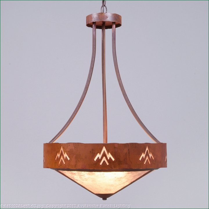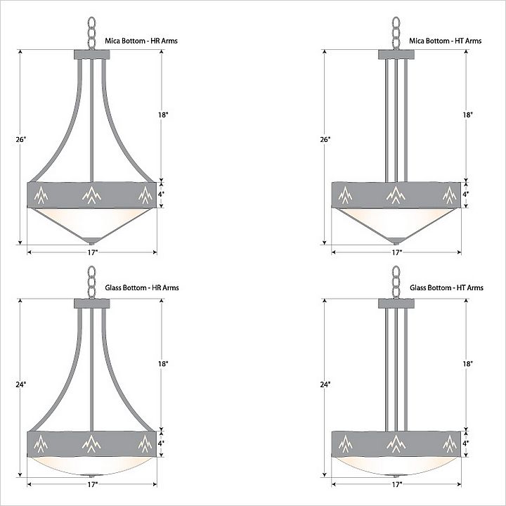 The Ridgemont Foyer Chandelier Large Tall - Shade Bottom- Deception Pass Cutout is 17 inches in diameter by 25 inches tall, and features our exclusive southwest artwork around the steel band. Behind each cutout is a diffuser panel. This small chandelier comes with a choice of diffuser material: Almond Mica, Amber Mica, or Ivory Paper. A matching ceiling canopy is also included, along with 3 feet of chain and 10 extra feet of wire. This item will add a rustic, Southwestern character to the entryway of any log home, cabin or northwood lodge-themed room.
