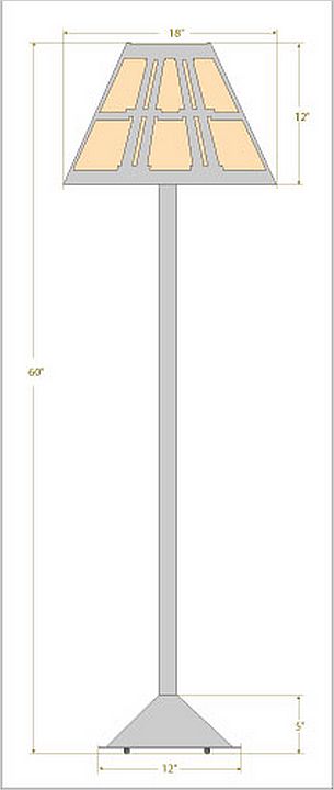 The Rocky Mtn Floor Lamp - Eastlake features an 18in. wide by 12in. tall lampshade frame with our exclusive mission-style artwork displayed on all four panels. The lamp is made of heavy gauge steel, and has a diffuser choice between Almond or Amber mica. The light features a simple stand with a square base, four molded vinyl feet on the bottom to protect the floor's surface, and a three-way switch built into the socket. In order to protect the pieces from damage during shipment, minor assembly of the lamp is required; this consists of inserting the pole into the base, and tightening the two bolts. This mission-styled floor lamp will bring warm character to any cottage, craftsman-styled room, or traditional home.