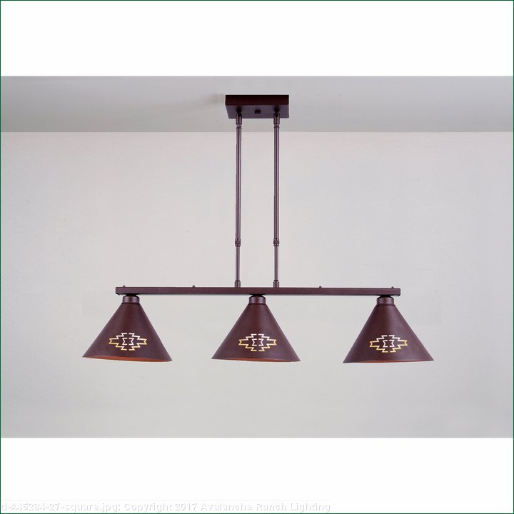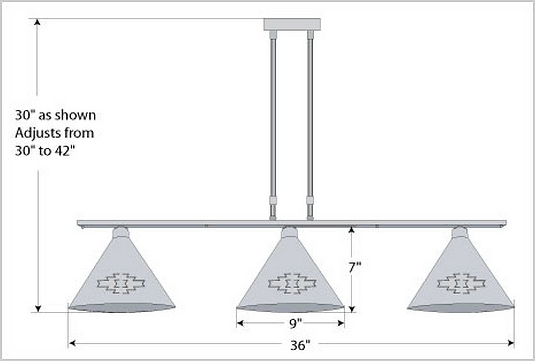 This Canyon Island/Billiard Small - Pueblo provides direct lighting for a kitchen island, eating bar, billiard table or similar locations where a direct light is desired. Included with the fixture is 10 feet of wire and two telescoping stems that have an adjustment range of 15 to 30 inches. For longer stem lengths (up to 138 inches), order one or more of the extension kits. A matching 5 x 10 inch ceiling canopy is also included.