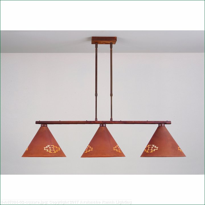 This Canyon Island/Billiard Medium - Pueblo provides direct lighting for a kitchen island, eating bar, billiard table or similar locations where a direct light is desired. Included with the fixture is 10 feet of wire and two telescoping stems that have an adjustment range of 15 to 30 inches. For longer stem lengths (up to 138 inches), order one or more of the extension kits. A matching 5 x 10 inch ceiling canopy is also included.