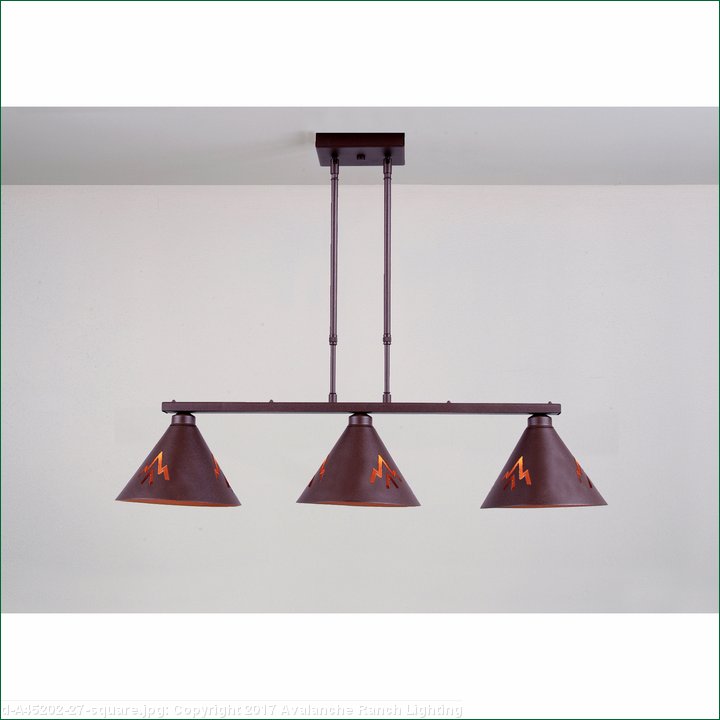 This Canyon Island/Billiard Small - Deception Pass provides direct lighting for a kitchen island, eating bar, billiard table or similar locations where a direct light is desired. Included with the fixture is 10 feet of wire and two telescoping stems that have an adjustment range of 15 to 30 inches. For longer stem lengths (up to 138 inches), order one or more of the extension kits. A matching 5 x 10 inch ceiling canopy is also included.