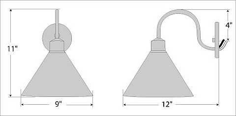 The Canyon Sconce Large - Rustic Plain features a plain cone and meets the standards set by the International Dark-Sky Association, which seeks to eliminate glare and upward light. The light is directed downward. Mounts to a minimum 5 inch square board. UL approved for wet locations. Hardwire only. Note: Only powdercoated finishes are recommended for exterior locations.