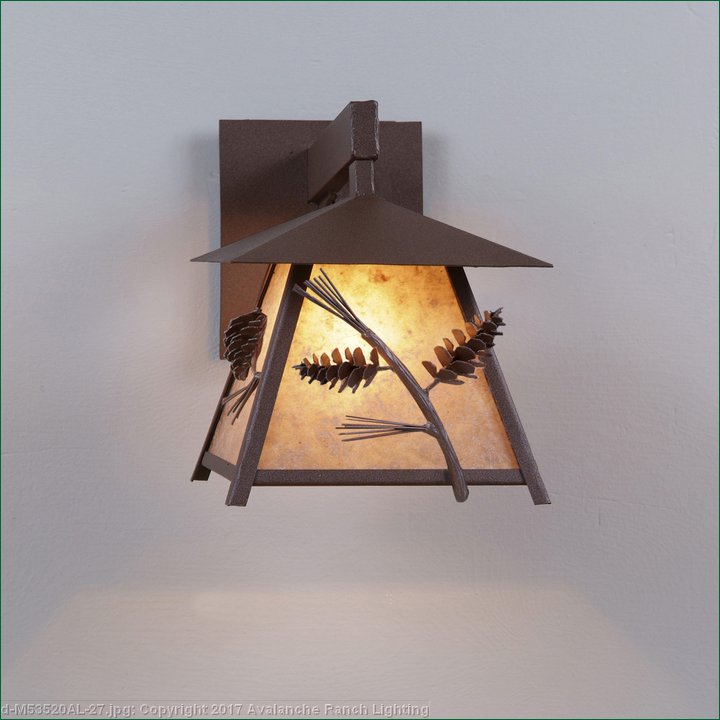 The Smoky Mtn Sconce Small - Pine Cone fixture is UL-rated for indoor and outdoor locations. Our exclusive steel pine cone branches are displayed on the two front panels, along with 3D pine cone artwork on the side panels. The fixture has a steel frame, and comes with a diffuser material choice between Almond or Amber mica. The sconce is hardwire only, and attaches to the wall with a 4.5 inch square pan. This light will bring rustic character to any log home, cabin or northwood lodge-themed room.