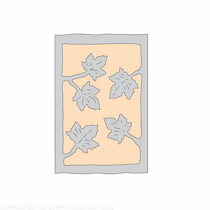 The Cascade Exterior Sconce - Maple Leaves features twin lightbulbs, one pointing down and one pointing up, and surrounded by a 10 inch tall frost glass cylinder behind the mica and a 5 x 9 inch backplate, which can be mounted directly to an exterior wall or attached to a square wooden block. This fixture is offered with a shade diffuser choice of either Almond or Amber mica. UL approved for wet locations. Hardwire only. This is the exterior version of our very popular Cascade Sconce series M133 and is ideal for bringing rustic lighting to the exterior of any log home or cabin.