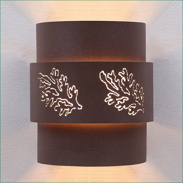 The Northridge Sconce Large - Cedar Bough Cutout features a steel frame with our exclusive cedar bough artwork in the center band. The fixture includes one bulb pointing upward and another downward, and a tall glass cylinder to cover the lightbulbs. An acrylic lens also covers the cutout. This Southwest-inspired sconce will provide unique interior or exterior rustic lighting for any log home, cabin or northwood lodge-themed room. Hardwire only. Note: Only powdercoated finishes are recommended for exterior locations.