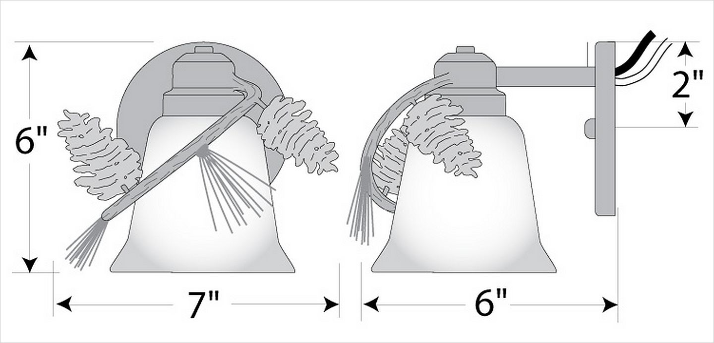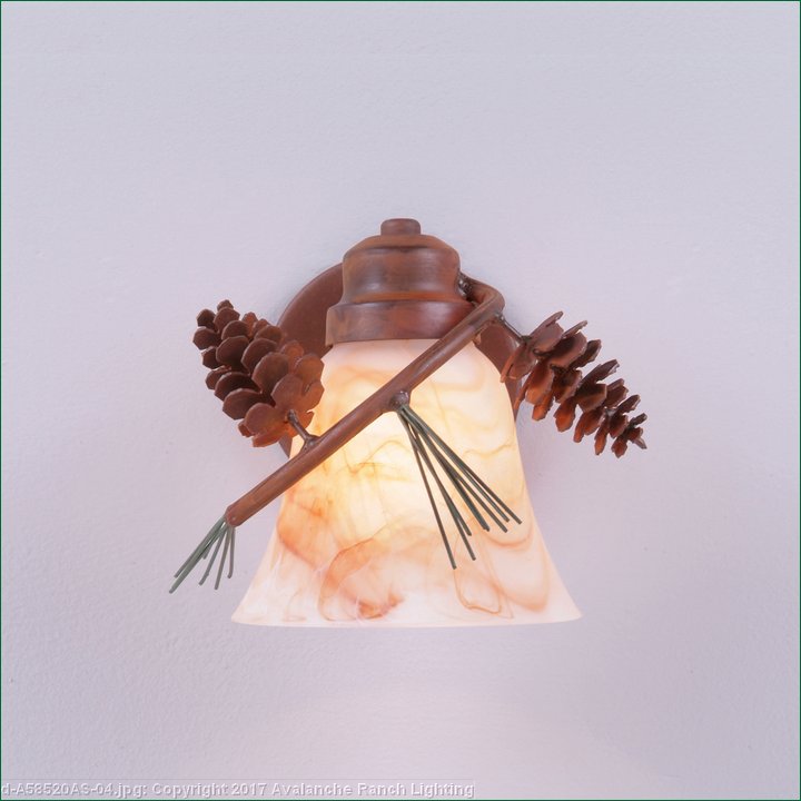 The Sienna Sconce - Pine Cone is a small wall fixture which features simple rustic styling with pine cones that are 3D and made of steel, with pine needles and a rustic branch. There are six different glass globes that fit this light, so you can pick a style that suits your decorating needs. This light fixture will provide abundant light to any room, whether in a log cabin, or in a traditional home where a eye-catching decor style is desired. Hardwire is standard.