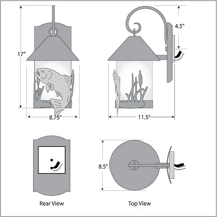The Vista Lantern Sconce - Cattails features an 8 inch tall by 6 inch diameter frosted cylinder glass surrounded by the metal art images of cattails. This exterior sconce is perfect for anyone looking to bring a touch of rustic wildlife to the outside entrances of their log home, cabin or northwood lodge-themed room. Mounts to a minimum 5 inch square board or wall area. UL approved for Wet Locations.