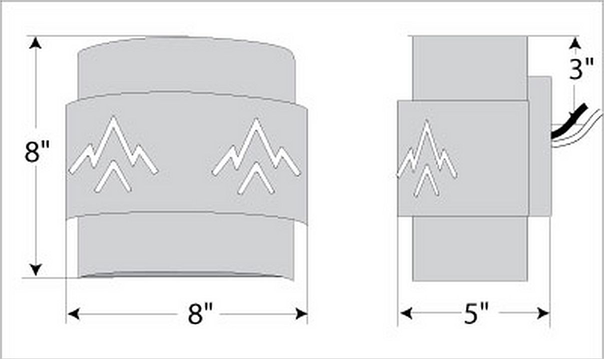 The Northridge Single Sconce - Deception Pass features a single bulb pointing downwards under a steel frame with our exclusive Southwest-inspired deception pass art in the center band. An acrylic lens covers the cutout and a glass globe covers the lightbulb. This Southwest-inspired sconce will provide unique interior or exterior rustic lighting for any log home, cabin or northwood lodge-themed room. Hardwire only. Note: Only powdercoated finishes are recommended for exterior locations.