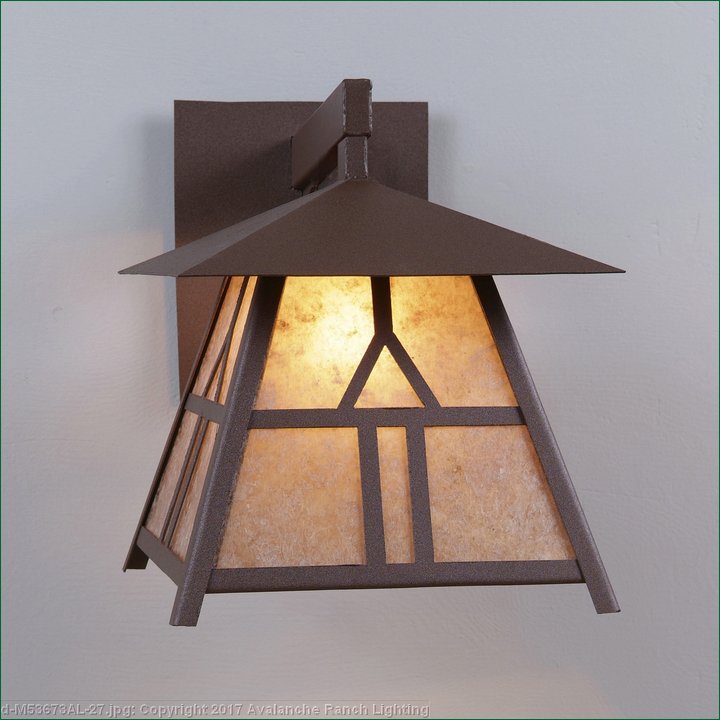 The Smoky Mtn Sconce Large - Westhill fixture is UL-rated for indoor and outdoor locations. Our exclusive mission-style artwork is displayed on all four panels. The fixture has a steel frame, and comes with a diffuser material choice between Almond or Amber mica. The sconce is hardwire only, and attaches to the wall with a 4.5 inch square pan. This craftsman-styled sconce will bring warm lighting and character to any cottage, home, or mission-styled room.
