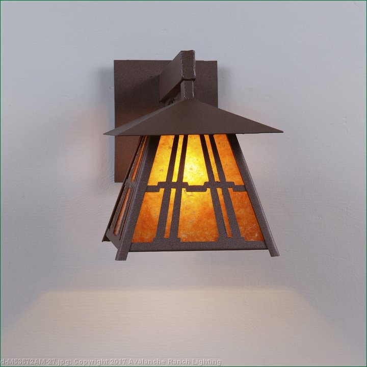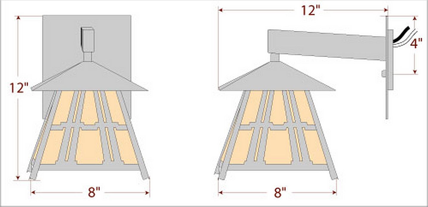 The Smoky Mtn Sconce Small - Eastlake fixture is UL-rated for indoor and outdoor locations. Our exclusive mission-style artwork is displayed on all four panels. The fixture has a steel frame, and comes with a diffuser material choice between Almond or Amber mica. The sconce is hardwire only, and attaches to the wall with a 4.5 inch square pan. This craftsman-styled sconce will bring warm lighting and character to any cottage, home, or mission-styled room.