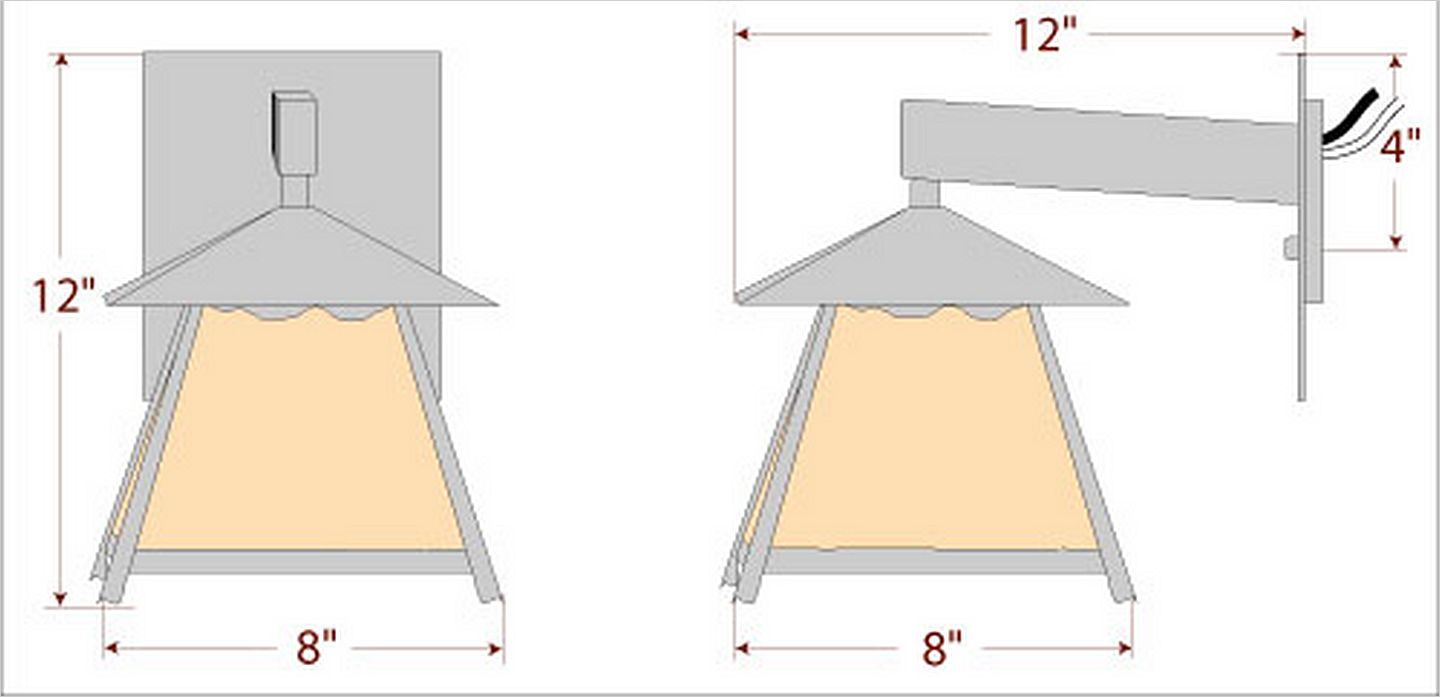 The Smoky Mtn Sconce Small - Rustic Plain fixture is UL-rated for indoor and outdoor locations. Our exclusive mountain artwork is displayed on the lantern, which peeks out along the very top of each panel. The fixture has a steel frame, and comes with a diffuser material choice between Almond or Amber mica. The sconce is hardwire only, and attaches to the wall with a 4.5 inch square pan. This light will bring rustic character to any log home, cabin or northwood lodge-themed room.