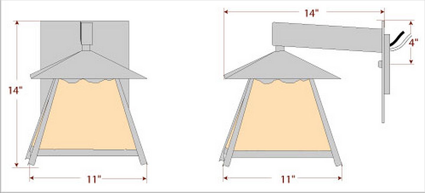 The Smoky Mtn Sconce Large - Rustic Plain fixture is UL-rated for indoor and outdoor locations. Our exclusive mountain artwork is displayed on the lantern, which peeks out along the very top of each panel. The fixture has a steel frame, and comes with a diffuser material choice between Almond or Amber mica. The sconce is hardwire only, and attaches to the wall with a 4.5 inch square pan. This light will bring rustic character to any log home, cabin or northwood lodge-themed room.
