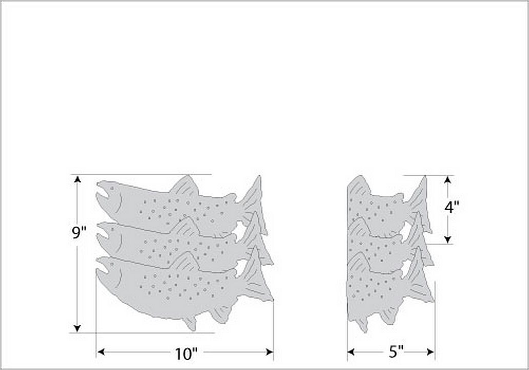 The Salmon Run Exterior Sconce features three steel salmon images set in front of the lighting. It is UL approved for wet locations. This item comes with a frosted glass cylinder which covers the bulb. The light source points downward. This rustic light is ideal for anyone looking to bring a touch of warm, rustic character to the outside lighting of their log home, cabin or northwood lodge-themed room. Mounts to a minimum 5 inch square board. Available only in powder-coated finish options.