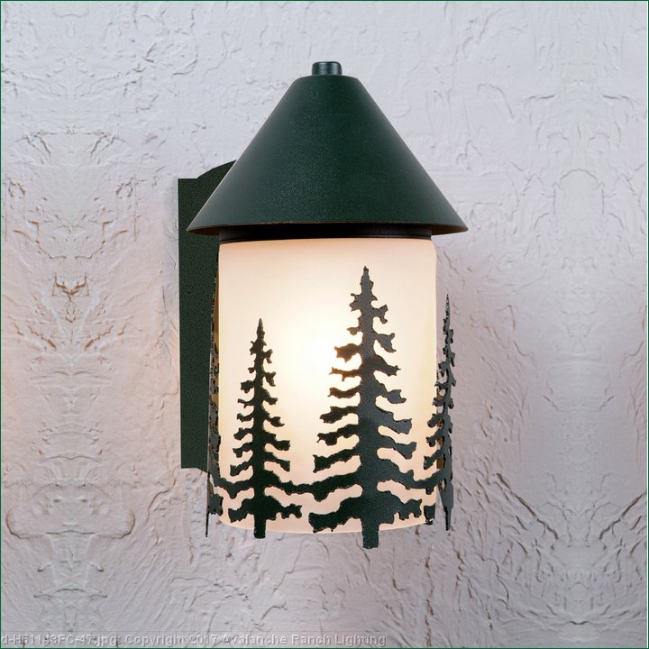 The Cedarline Sconce - Cedar sconce is suitable for outdoor and indoor locations and features a frosted white glass cylinder with cedar trees all the way around. This light is ideal for anyone wanting to add rustic lighting to the exterior of their log home or cabin.
