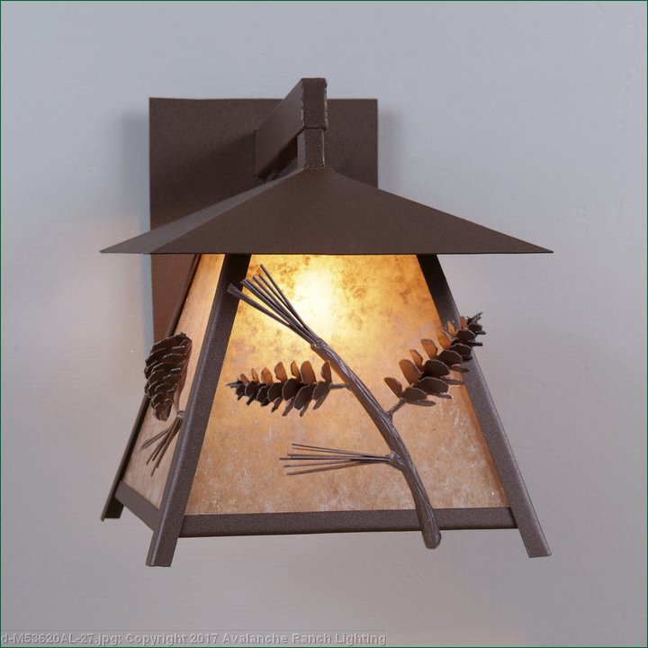 The Smoky Mtn Sconce Large - Pine Cone fixture is UL-rated for indoor and outdoor locations. Our exclusive steel pine cone branches are displayed on the two front panels, along with 3D pine cone artwork on the side panels. The fixture has a steel frame, and comes with a diffuser material choice between Almond or Amber mica. The sconce is hardwire only, and attaches to the wall with a 4.5 inch square pan. This light will bring rustic character to any log home, cabin or northwood lodge-themed room.