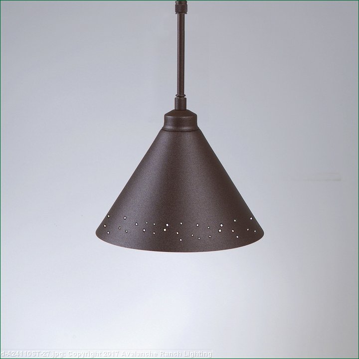 The Canyon Pendant Small - Possession Point features a heavy gauge spun steel cone with hand-cut holes along the bottom edge. This light is ideal for anyone looking for a small hanging light to add rustic character to their log home, cabin or northwoods lodge-themed room. All pendants include a matching ceiling canopy that can be mounted on either a flat or vaulted ceiling. Choice of three ways to hang our pendants: 14 ft black cord (BC), 15 inch - 30in adjustable stem (ST) or 3 ft chain (CH). Black cord or chain hung versions are suitable for interior and damp locations; adjustable stem hung version are suitable for wet locations. Note: Only the Powder Coated Finishes are suitable for wet locations. Hanging choice must be specified at time order.