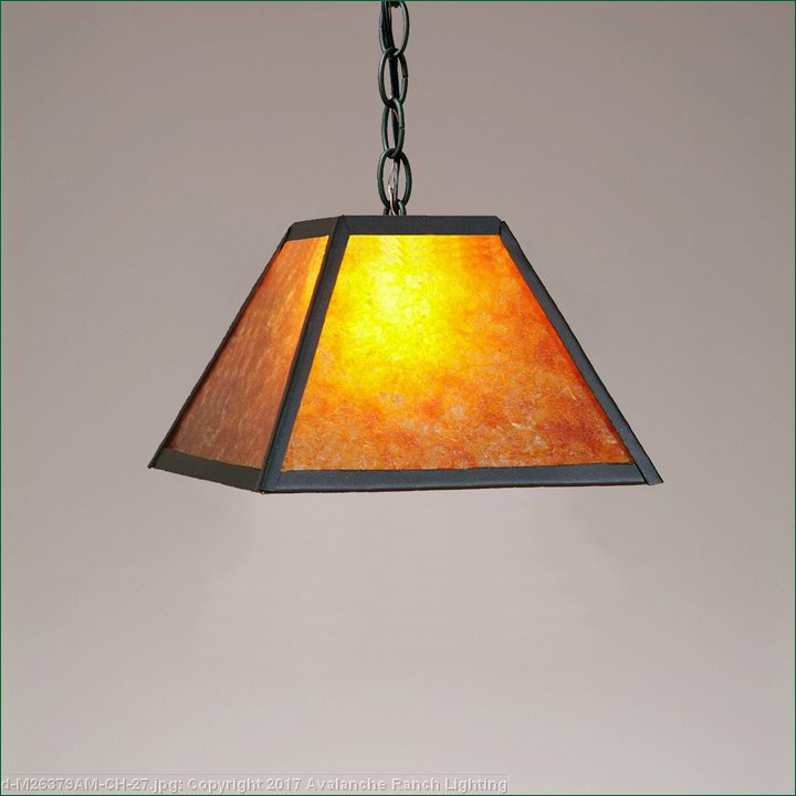 Pictured in Finish #27-Rustic Brown with Amber Mica Shade and Chain.