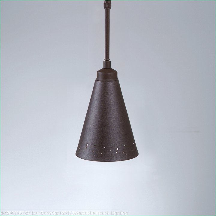 The Canyon Pendant Extra Small - Posession Point features a heavy gauge spun steel cone with hand-cut holes along the bottom edge. This light is ideal for anyone looking for a small hanging light to add rustic character to their log home, cabin or northwoods lodge-themed room. All pendants include a matching ceiling canopy that can be mounted on either a flat or vaulted ceiling. Choice of three ways to hang our pendants: 14 ft black cord (BC), 15 inch - 30in adjustable stem (ST) or 3 ft chain (CH). Black cord or chain hung versions are suitable for interior and damp locations; adjustable stem hung version are suitable for wet locations. Note: Only the Powder Coated Finishes are suitable for wet locations. Hanging choice must be specified at time order.