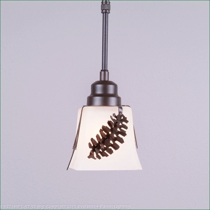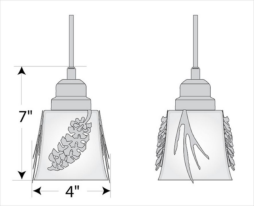 The Woodland Pendant - Spruce Cone features square mission style glass and 3D spruce cone designs surrounding the glass. Choice of glass color between Frost Clear and Tea-Stained. All pendants include a matching ceiling canopy that can be mounted on either a flat or vaulted ceiling. Choice of three ways to hang our pendants: 14 ft black cord (BC), 15 inch - 30in adjustable stem (ST) or 3 ft chain (CH). Black cord or chain hung versions are suitable for interior and damp locations; adjustable stem hung version are suitable for wet locations. Note: Only the Powder Coated Finishes are suitable for wet locations. Hanging choice must be specified at time order.
