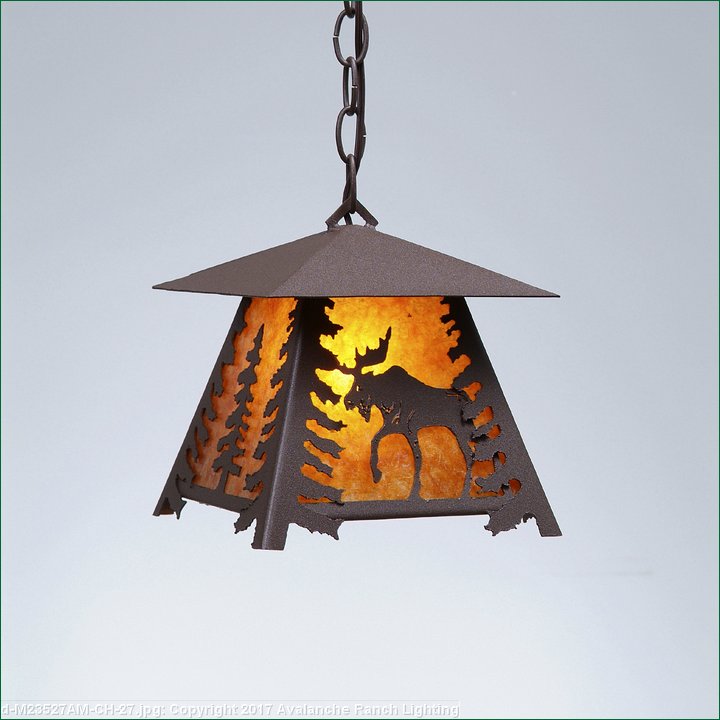 Pictured in Finish #27-Rustic Brown with Amber Mica Shade and Chain.