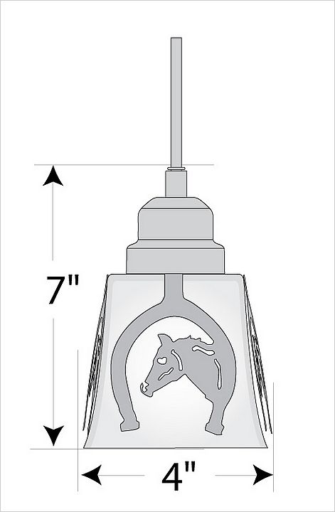 The Woodland Pendant - Horse Horseshoe features square mission style glass and simple leaf designs surrounding the glass. The horse head has hand-cut interior lines which gives each image a unique look. Choice of glass color between Frost Clear and Tea-Stained. All pendants include a matching ceiling canopy that can be mounted on either a flat or vaulted ceiling. Choice of three ways to hang our pendants: 14 ft black cord (BC), 15 inch - 30in adjustable stem (ST) or 3 ft chain (CH). Black cord or chain hung versions are suitable for interior and damp locations; adjustable stem hung version are suitable for wet locations. Note: Only the Powder Coated Finishes are suitable for wet locations. Hanging choice must be specified at time order.