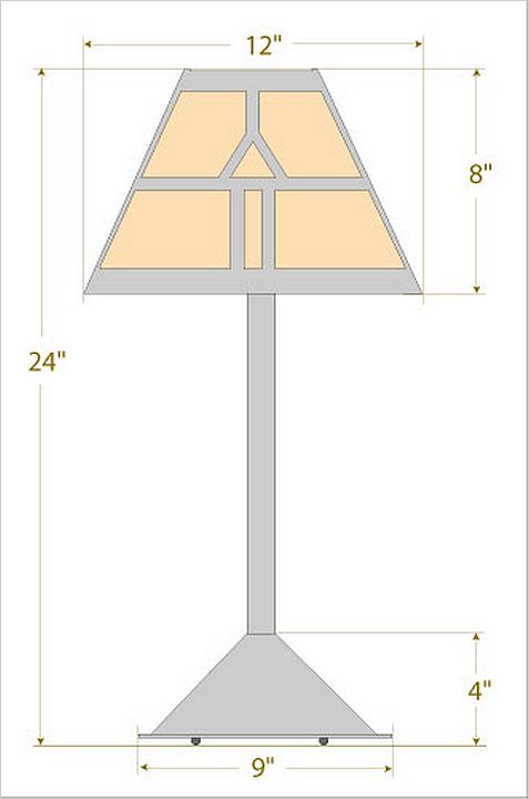 The Rocky Mtn Desk Lamp - Westhill features a 12in. wide by 8in. tall lampshade frame with our exclusive mission-style artwork displayed on all four panels. The lamp is made of heavy gauge steel, and has a diffuser choice between Almond or Amber mica. The light features a simple stand with a square base, four molded vinyl feet on the bottom to protect the table surface, and a three-way switch built into the socket. This mission-styled desk lamp will bring warm character to any cottage, craftsman-styled room, or traditional home.
