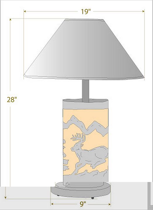 The Cascade Table Lamp - Mtn Deer stands about 29 inches tall and features our exclusive deer metal art on the front and a spruce tree on the back of the lamp. Spruce trees are also on each side. It has a round base with a shade material choice between Almond or Amber mica. The upper socket also has a 3-way switch, so that you can have just the base lit, just the upper lamp lit, or both lit. Lampshade (Item #730-KR) is sold separately. This rustic lamp is one of our most popular styles and will bring a rustic decorative touch to any log home, cabin or northwood lodge-themed room.