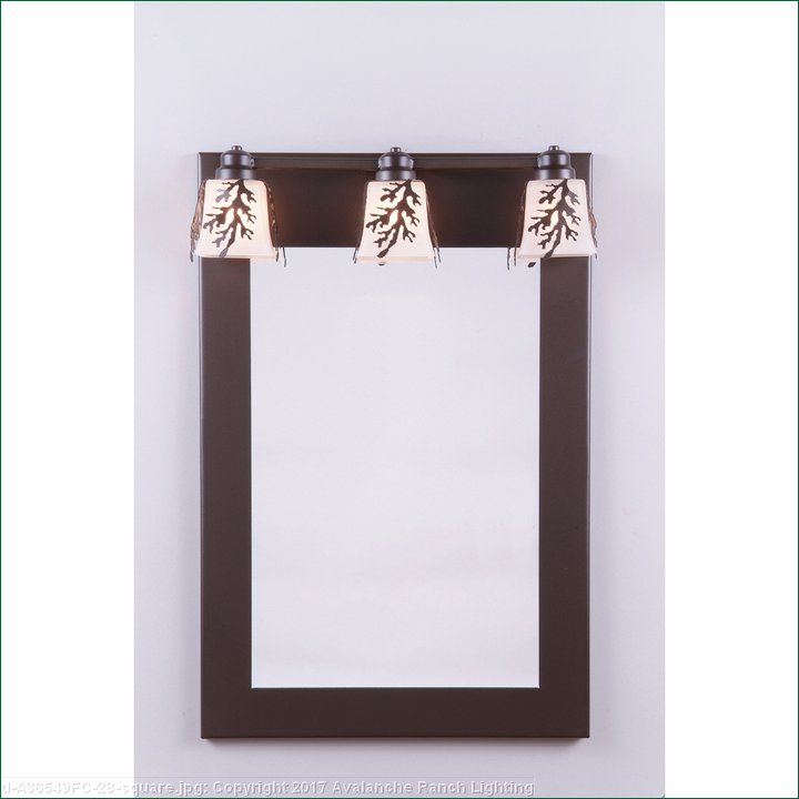 The Woodland Mirror Frame with Lights - Cedar features cedar boughs, two pieces of square mission style glass with a choice of color between Frost Clear and Tea-Stained and a mirror frame. The lighting provided by this item allows the mirror to be hung in even the dimmest areas of any home, while also creating a stylish rustic contemporary atmosphere.