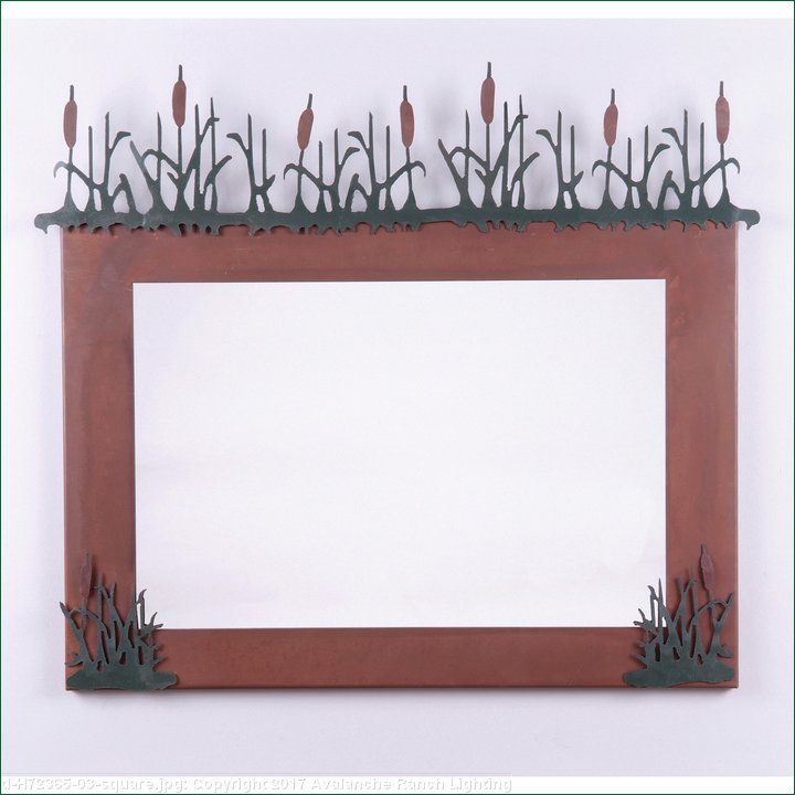 The Wasatch Horizontal Mirror Frame - Cattails features a whole bunch of metal cattails. Here we have taken our popular Wasatch Bath Mirror and removed the lamping.