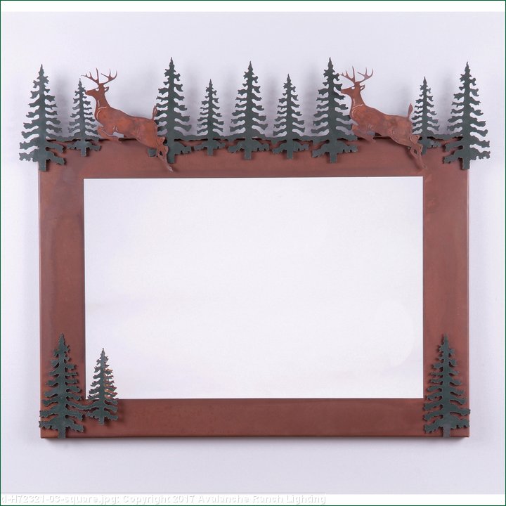The Wasatch Horizontal Mirror Frame - Valley Deer features a deer with cedar trees. Here we have taken our popular Wasatch Bath Mirror and removed the lamping.