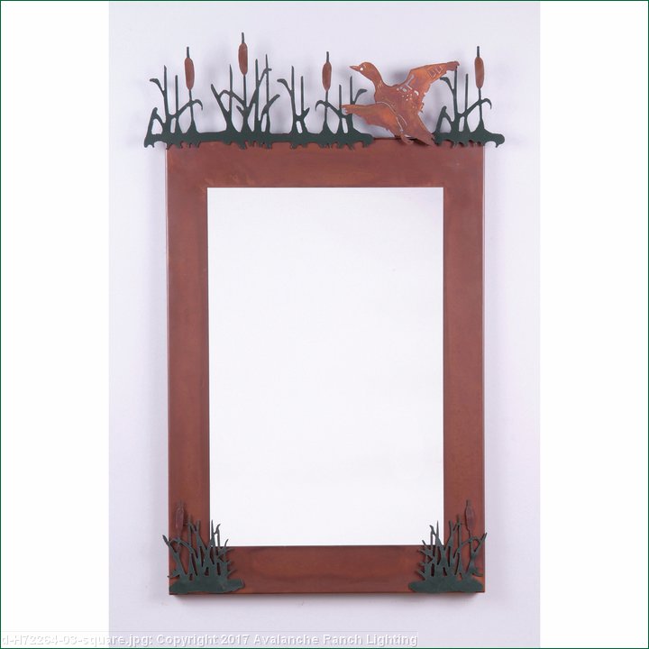 The Wasatch Vertical Mirror Frame - Loon features a loon with cattails. Here we have taken our popular Wasatch Bath Mirror and removed the lamping.