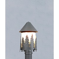 The Vista Post Mount Small Series is 8 inches in diameter, 13 inches tall and features a frosted glass cylinder surrounded by wildlife metal art images, including the bear, moose, deer and brand new pine cones. The top cone is removable for lamping the single standard sized bulbs. Mounts to a standard 3' diameter lamppost using the attached post holder on bottom. UL approved for Wet Locations. These post lights are perfect for anyone looking to bring a touch of rustic wildlife to the outside entrances of their log home, cabin or northwood lodge-themed home.
