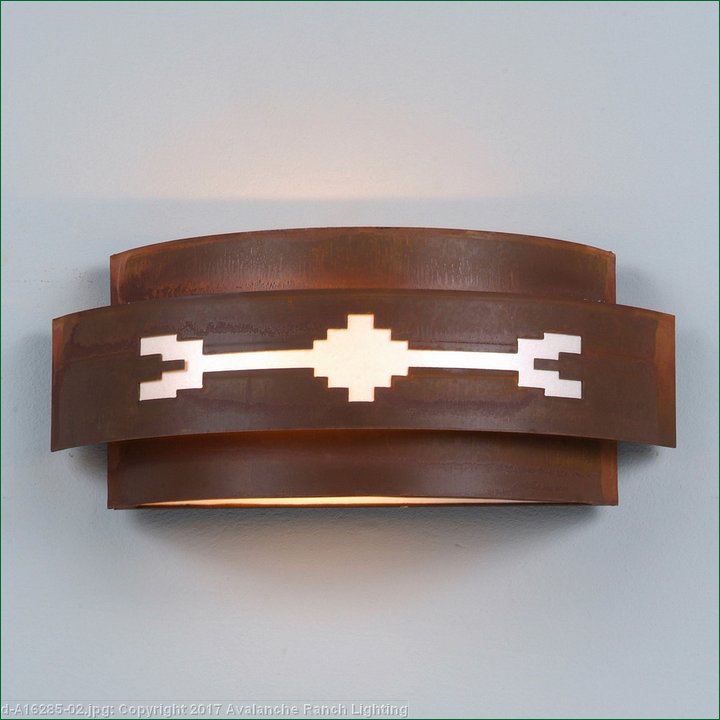 The Northridge Double Sconce - Del Rio features two bulbs positioned sideways under a steel frame with hand-cut Southwest-inspired images in the center band. It has a frost glass diffuser bottom and light projects both up and down. Synthetic mica is attached behind each image cutout. This sconce will provide rustic Southwestern lighting to the walls of any log home, cabin or northwood lodge-themed room.