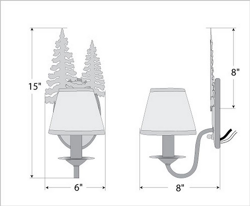 The Diablo Sconce - Cedar features an oval backplate, an on/off switch located on the front of the fixture and a candelabra clip shade. Comes standard with a lampshade, Style #710-KR (3 x 5 x 4). This light is ideal for anyone looking to add warm, rustic lighting to their log home, cabin or northwood lodge-themed room.