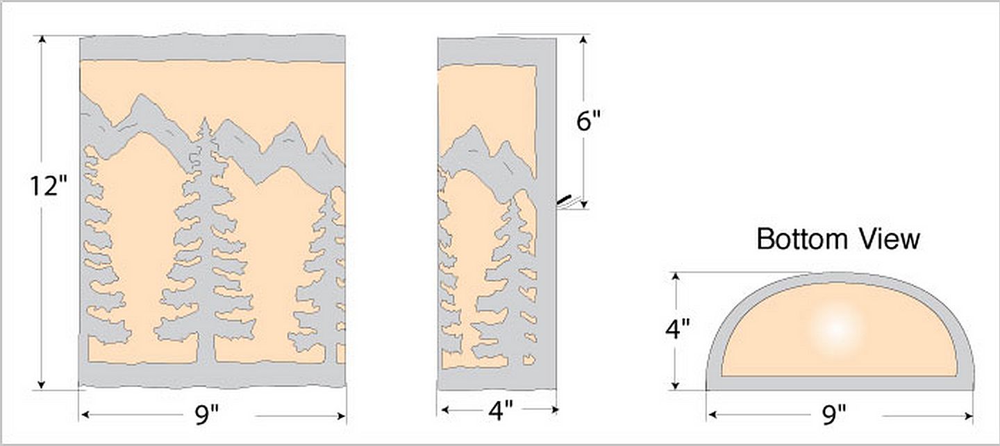 The Cascade Sconce Large - Spruce Tree features our exclusive metal art of spruce trees with a rounded mica under a steel frame. One lightbulb points upward and the other points downward. ADA compliant. Diffuser material is offered with a choice between Almond or Amber mica. Hardwire is standard. Interior and damp location only, however exterior version available under Product No. M51814. This light will add rustic character to any log home, cabin or northwoods lodge-themed room.