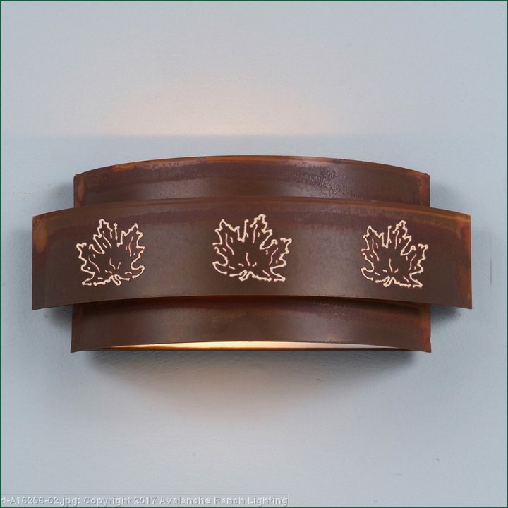 The Northridge Double Sconce - Maple features two bulbs positioned sideways under a steel frame with hand-cut maple images in the center band. It has a frost glass diffuser bottom and light projects both up and down. Synthetic mica is attached behind each image cutout to help diffuse the light. This Southwest-inspired sconce is really great for the hallways and will provide a warm accent to the walls of your home.