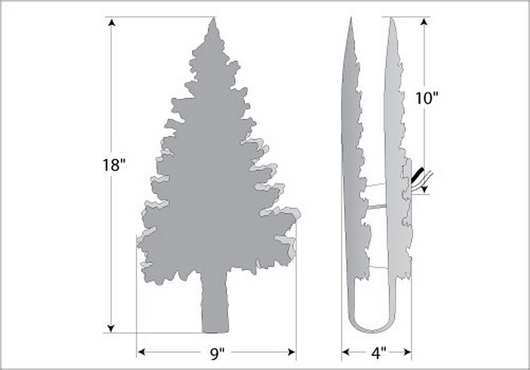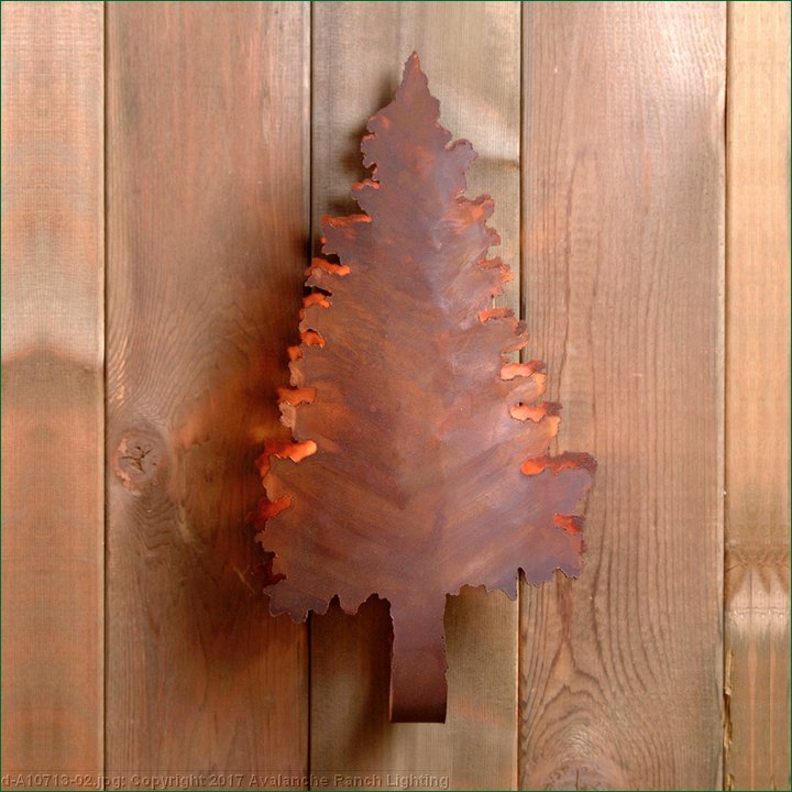 The Pine Shadows sconce features one of our trademarked steel pine trees in front and behind with the medium-based lamping between. Covering the bulb is a frost clear glass diffuser, which shields the bulb from side viewing. Suitable for interior and damp locations only. This sconce is ideal for anyone looking to add rustic character or unique log home lighting to their home.