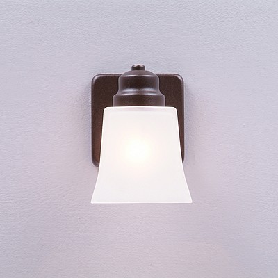 The Woodland Single Sconce - Rustic Plain features square mission style glass with a choice of color between Frosted and Tea-Stained. This sophisticated yet rustic looking sconce will had a touch of stylish lighting to the exterior of any log home, cabin or northwood lodge-themed room. Mounting plate measures 4.5 inches square. Note: For wet locations, the glass may face down only and only the powdercoated finishes are recommended.