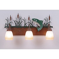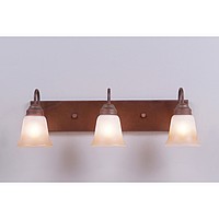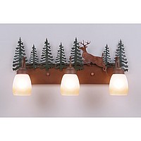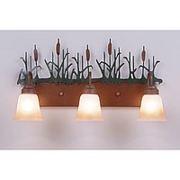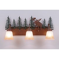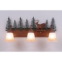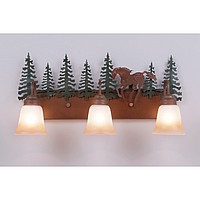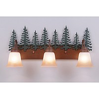The Wasatch Bath Vanity Series is our best selling rustic bath fixtures. This Triple Bath Vanity Light is 25 inches wide and the three glass globes are offered with a choice of 8 different colors/styles. With it's rating of 100 W bulbs, this rustic bath light will really provide abundant light to any rustic bathroom.